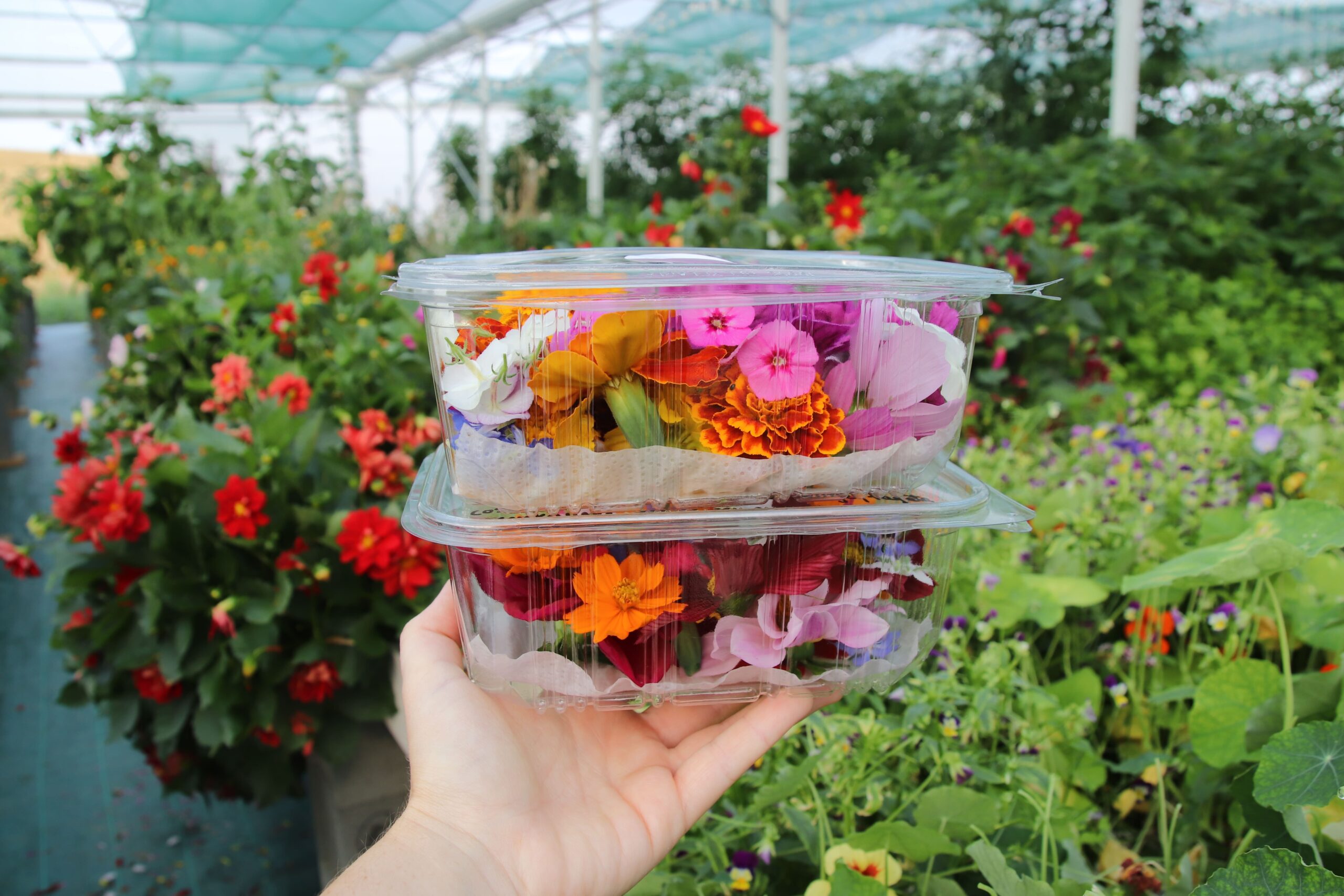 9h30 à 10h45 Visite commentée de la serre hydroponique et découverte de la production de fleurs comestibles à la ferme Mongez-moi avec Marlène.