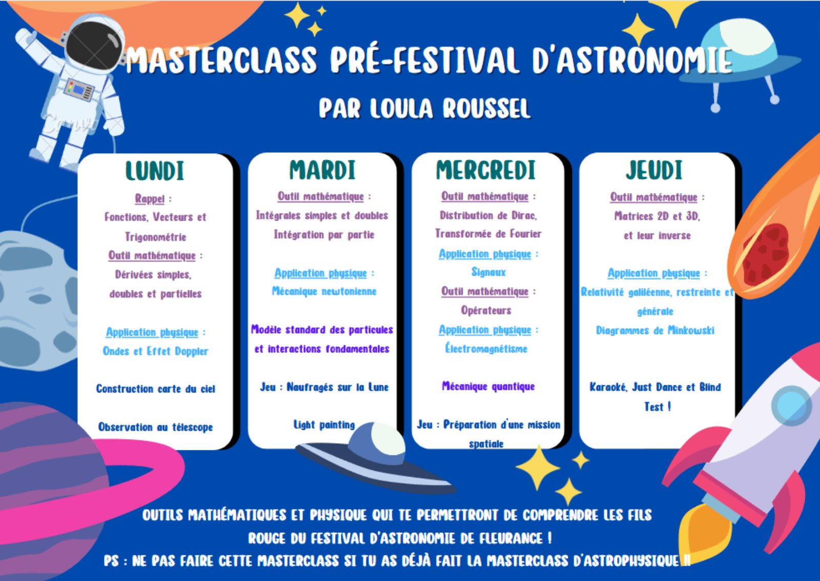 - Tu n’es pas là pour le festival d’Astronomie de Fleurance, mais uniquement pour le côté scientifique : pas d’inquiétude, cette Masterclass est aussi faite pour toi !